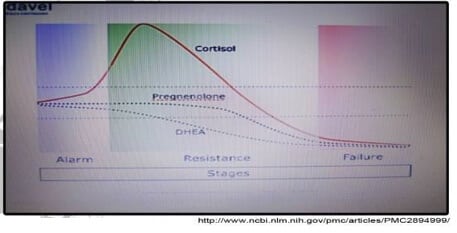 Qualquer tipo de stress (podendo ele ser positivo ou negativo) é caracterizado por um aumento de cortisol, aumento de DHEA, de catecolaminas e do sistema simpatico (overreaching).